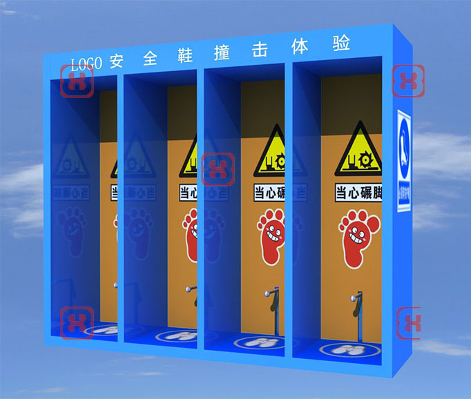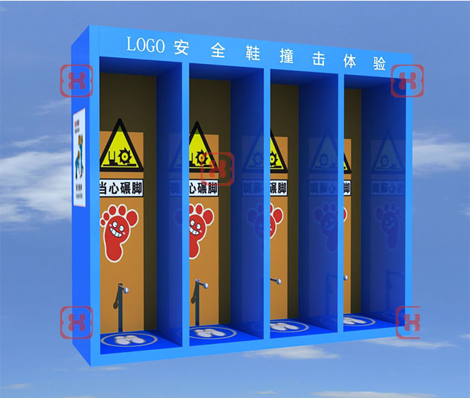 1、安全鞋撞擊體驗設置為四人用配備遙控裝置,尺寸一般為3500*1000*2500mm,可根據(jù)現(xiàn)場實際尺寸調節(jié)。