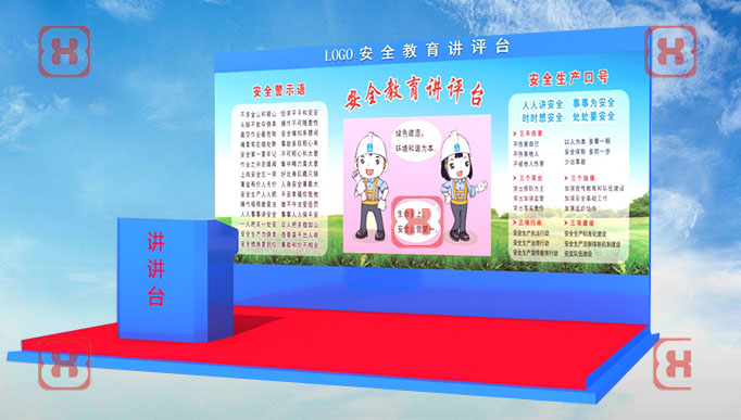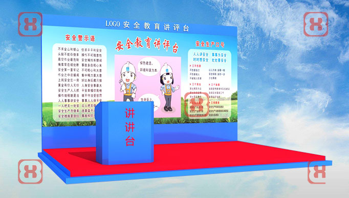 1、講評臺采用模板制作而成,一般尺寸為3500*2500*2800mm,可根據(jù)現(xiàn)場實際尺寸調(diào)節(jié)。