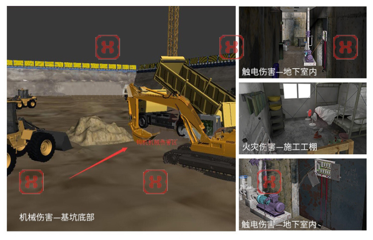 銳弦科技利用3Dmax建立了與實(shí)體體驗(yàn)館1:1的效果模型,通過軟件處理,結(jié)合VR眼鏡實(shí)現(xiàn)了動(dòng)態(tài)漫游,讓體驗(yàn)者有更加逼真的感受:可以直接感受體驗(yàn)電擊、高空墜落、洞口墜落、腳手架傾斜、墻體傾倒、隧道逃生、外架作業(yè)、支模系統(tǒng)作業(yè)、高空作業(yè)、塔吊吊裝等30多個(gè)項(xiàng)目虛擬效果;可以對(duì)各構(gòu)件定位、排版、做法、標(biāo)準(zhǔn)、屬性等信息進(jìn)行查看等。